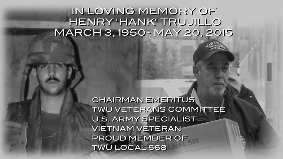 As you may, or may not, know…my dad, Hank Trujillo, passed away unexpectedly on May 20, 2015. He was a Vietnam veteran, who was actively involved with the Transport Workers Union Veterans Committee. This particular committee dedicated a lot of their time traveling to help all military members, Veterans and their families.